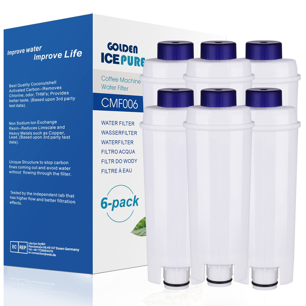 GOLDEN ICEPURE Coffee Machines Water Filter Compatible with De'Longhi DLSC002, SER3017 & 5513292811,De Longhi,ECAM, Esam, ETAM, BCO, EC-Series,6 Piec