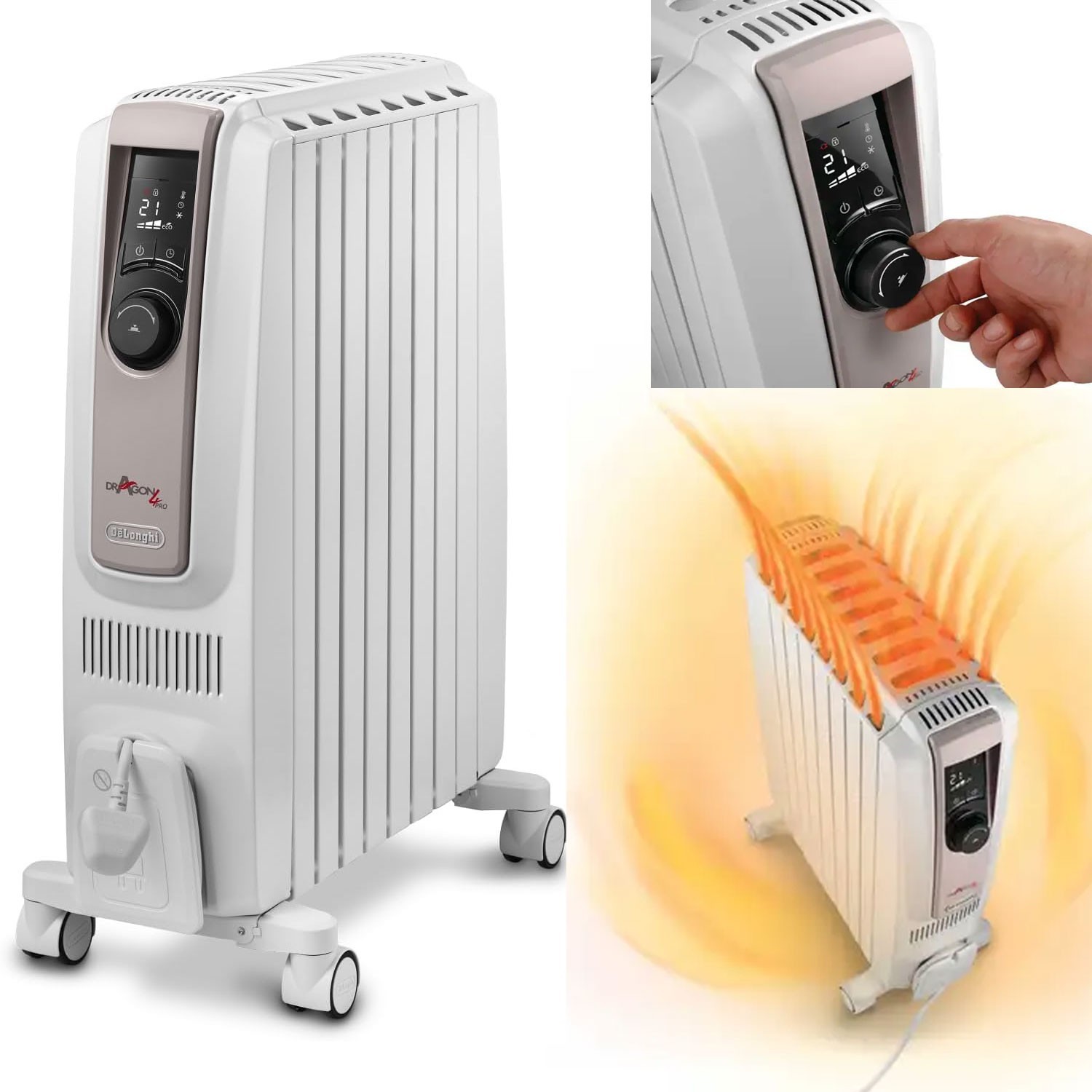 Delonghi 2000W Dragon 4 Digital Oil Filled Radiator - White, 3 Power Settings