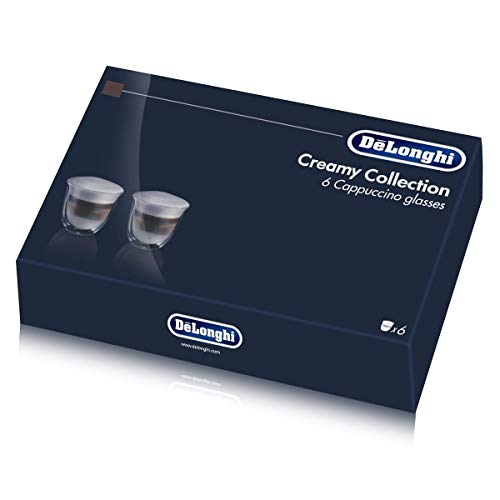 De'Longhi 5513296661-DLKC301 Delonghi DLKC301 Creamy Collection Double Walled Thermo Cappuccino Glasses, Set of 6, Dishwasher Safe,Clear, 270 milliliters, Transparent