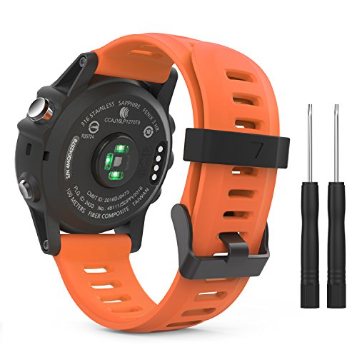 MoKo Silicone Sports Watch Strap for Garmin Fenix 3/3 HR/5X/5X Plus/D2 Delta PX/Tactix Bravo/Descent Mk1/Quatix 3, Orange, 21 cm, 145 mm - 210 mm (5.70 - 8.26 inches) Wrist