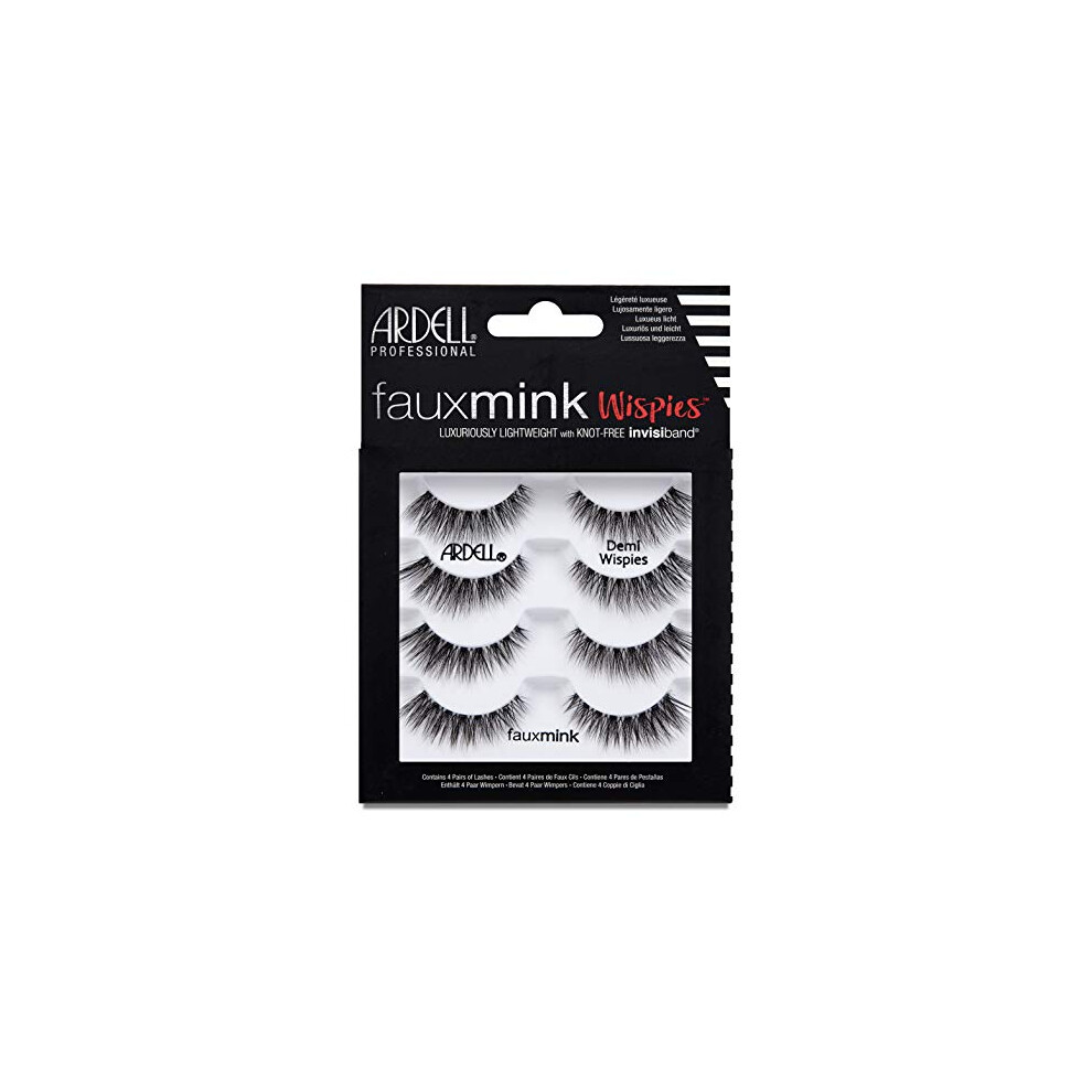 ARDELL False Eyelashes Faux Mink Demi Wispies 4 Pairs Multipack Black Medium Volume Long Length Invisiband Lightweight Silky Soft Faux Mink Eyelashes