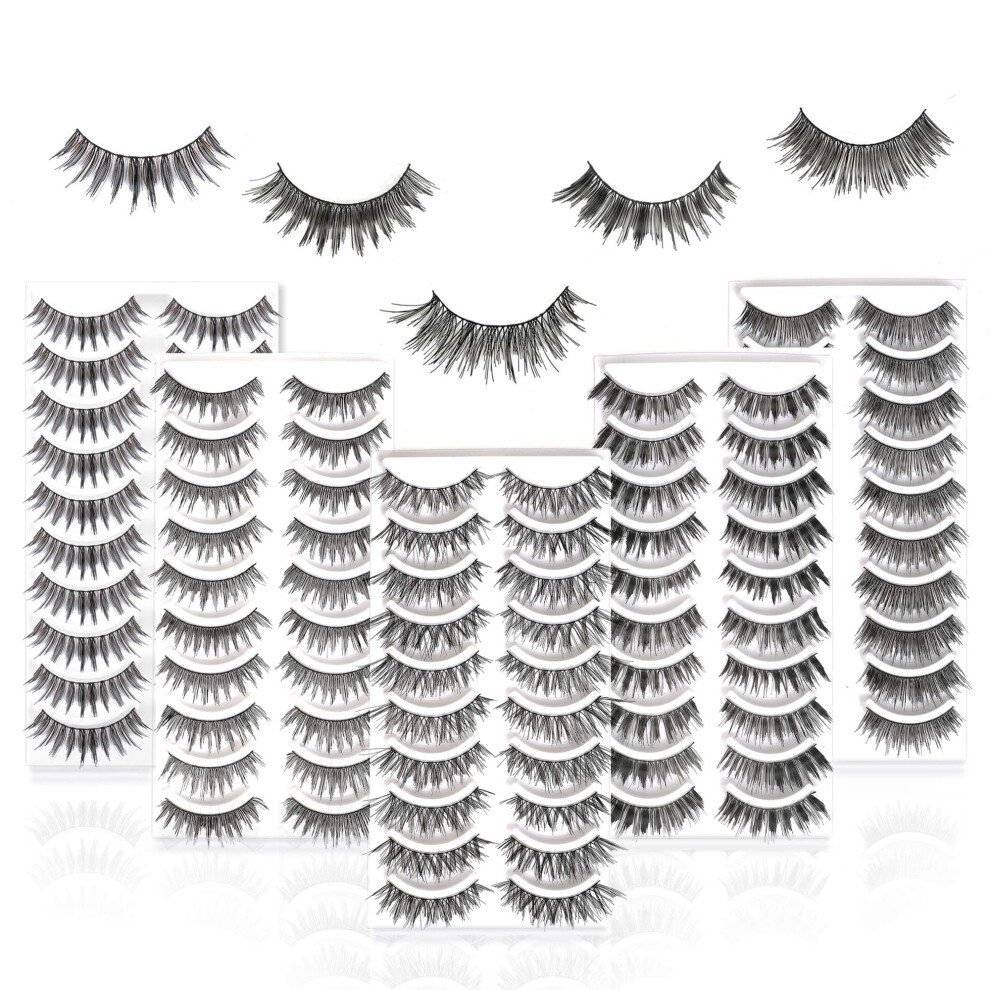 50 Pairs 5 Styles MUSELASH False eyelashes set professional 100% Handmade natural glamorous demi wispies volume multipacks cotton band 10 Pairs E