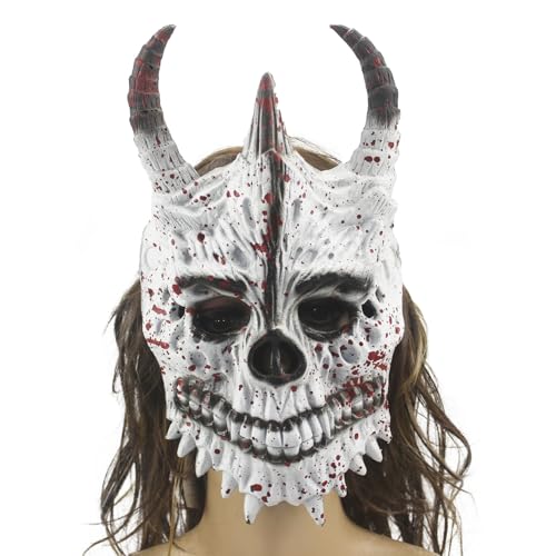 FakeFace Scary Halloween Mask PU Foam Horror Bloody Skull Horn Demon Monster Mask for Adult Cosplay Costume Accessories (White)