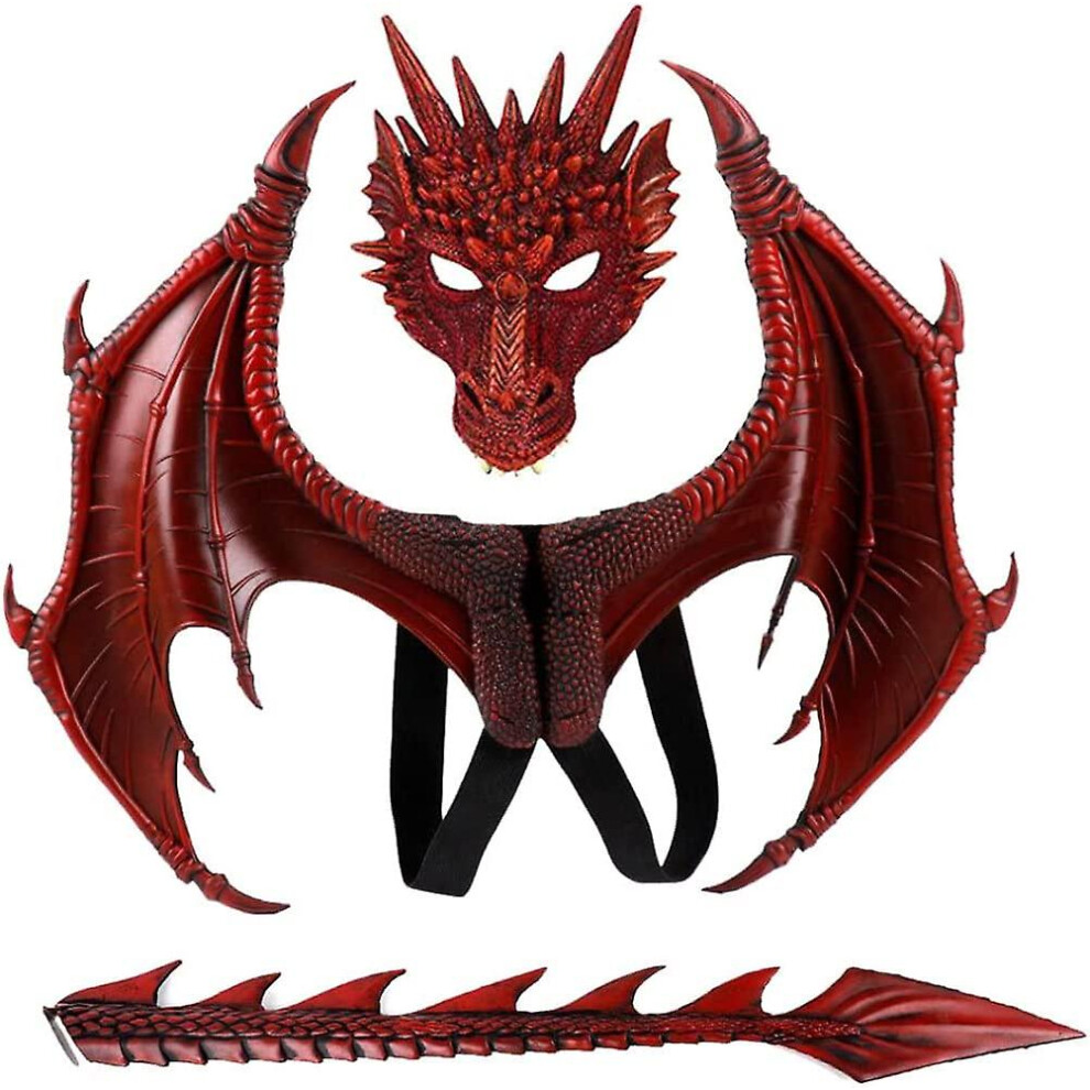 Devil Wings For Kids Costume, Demon Tail With Dino Mask Included, Healthy Fabric Pu Foam Dragon Costumes Set 3D Realistic Shape Comfortable Fit For