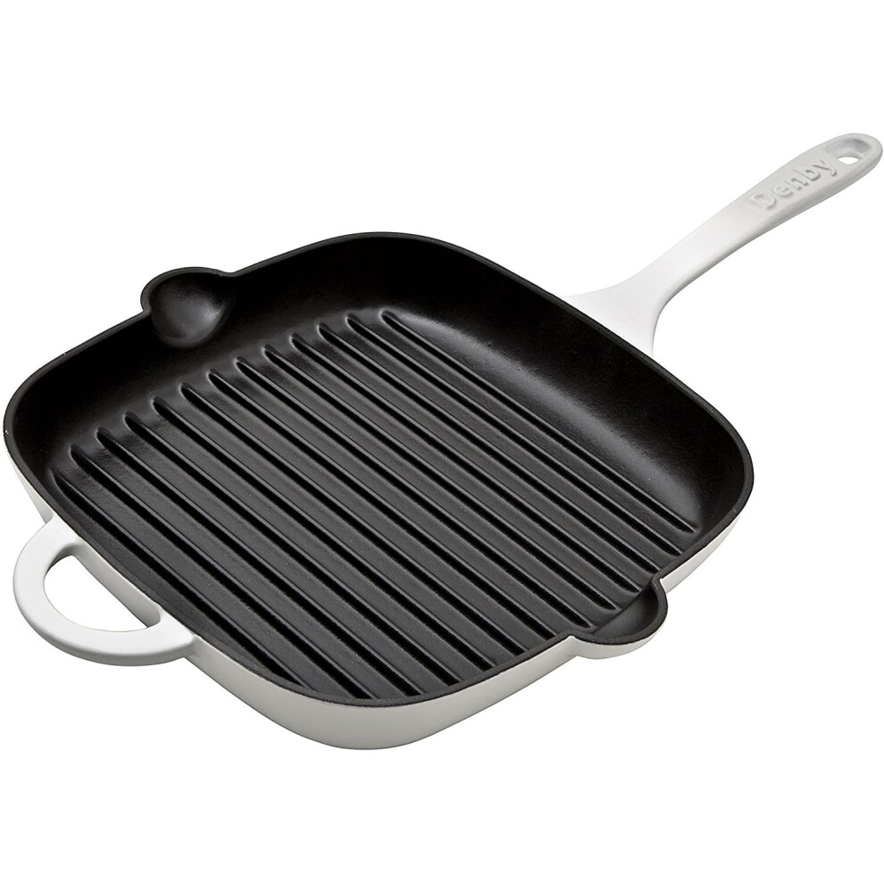Denby - Natural Canvas White Cast Iron Griddle Pan 25cm - Oven Safe, For All Hob Types, Induction, Gas, Electric, Non Stick
