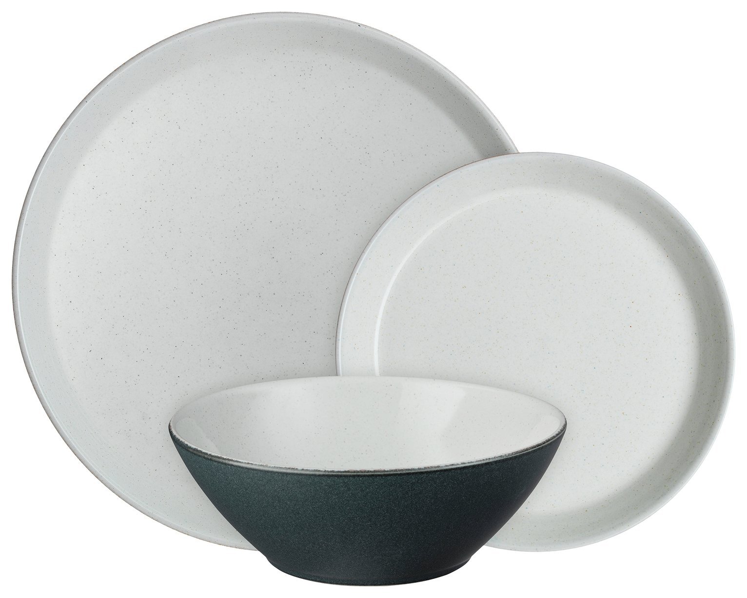 Denby - Halo Speckle Coupe Dinner Set For 4 - 12 Piece Ceramic Tableware - Dishwasher Microwave Safe Stoneware Crockery - Reactive Glaze, Grey - 4 x Dinner Plate, 4 x Medium Plate, 4 x Cereal Bowl