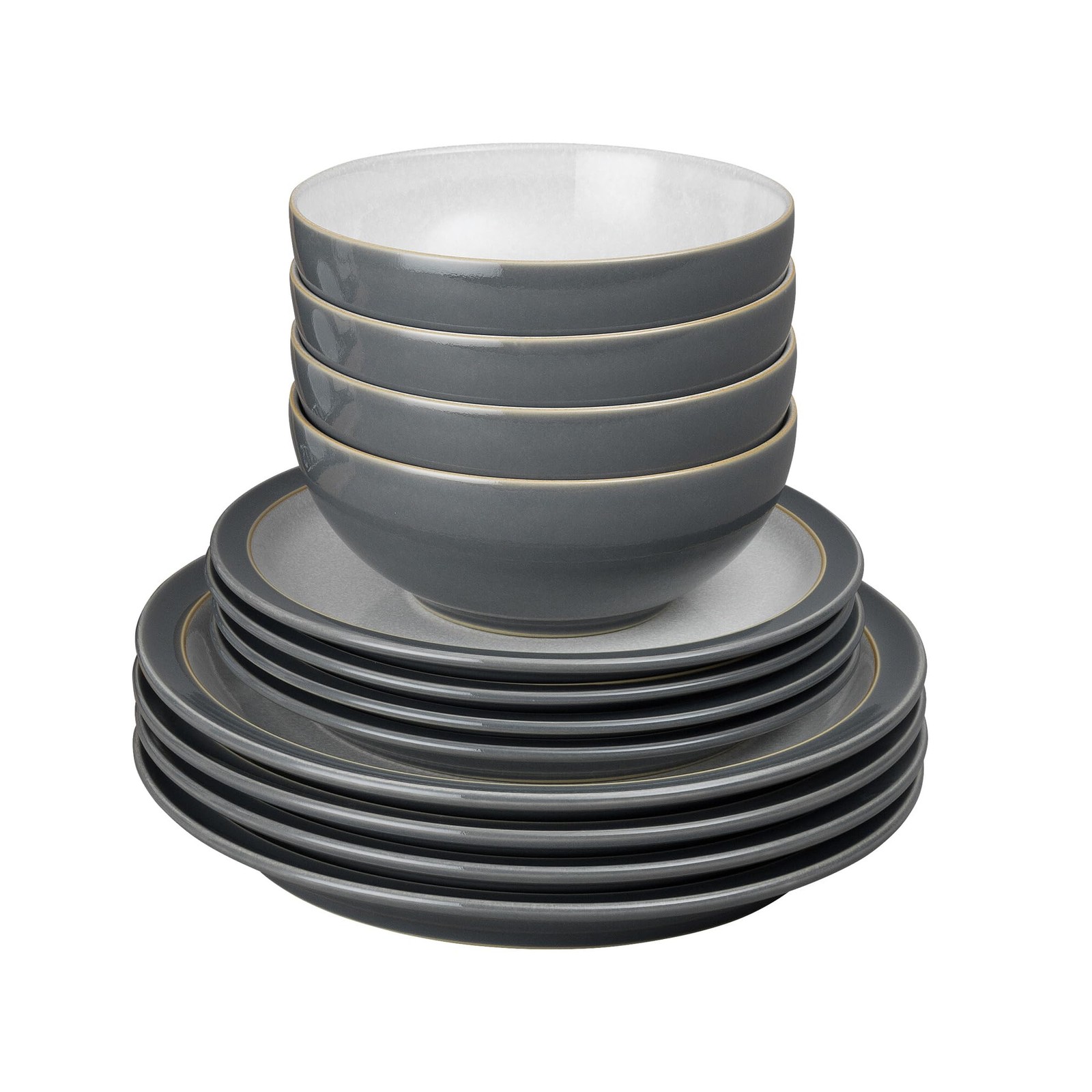 Denby 12 Piece Stoneware Dinner Set - Fossil Grey