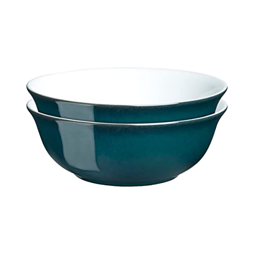 Denby - Greenwich Cereal Bowls Set of 2 - Dishwasher Microwave Safe Crockery 650ml, 16.5cm - Glazed Ceramic Stoneware Tableware - Green, White Chip & Crack Resistant Soup Bowls