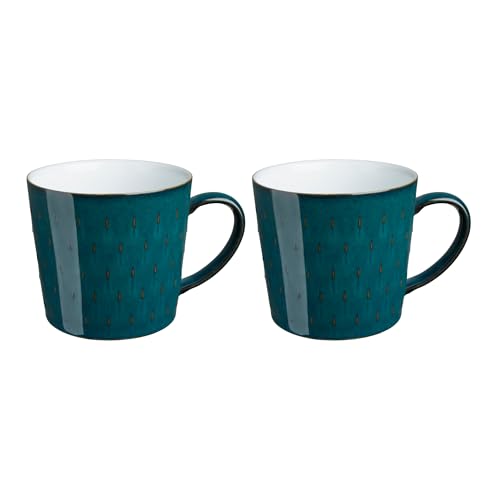 Denby - Greenwich Patterned Coffee Mug Set of 2 - 400ml Large Stoneware Ceramic Cascade Tea Mug Set For Home & Office - Dishwasher Safe, Microwave Safe - Green, White Glaze - Chip Resistant