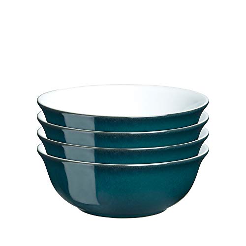 Denby - Greenwich Cereal Bowls Set of 4 - Dishwasher Microwave Safe Crockery 650ml, 16.5cm - Glazed Ceramic Stoneware Tableware - Green, White Chip & Crack Resistant Soup Bowls