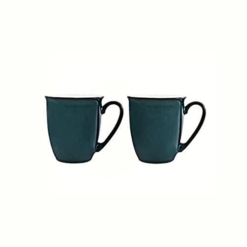 Denby - Greenwich Coffee Breakers Set of 2 - Dishwasher, Oven, Microwave, and Freezer Safe, 330ml (12cm x 10cm x 10cm) Green, White Ceramic Stoneware Tableware - Chip & Crack Resistant