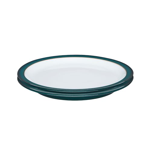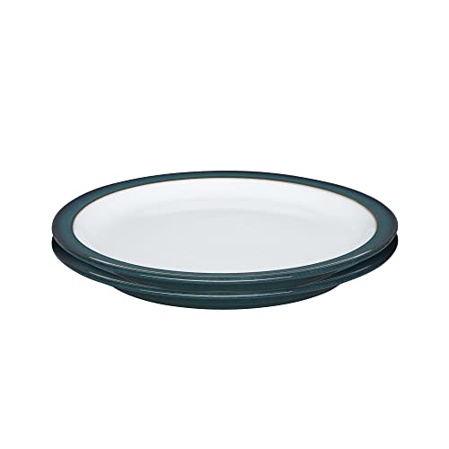 Denby - Greenwich Medium Plates Set of 2 - Green, White Dishwasher Microwave Safe Crockery 22cm - Glazed Ceramic Stoneware Tableware - Chip & Crack Resistant