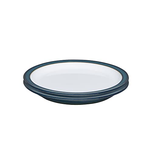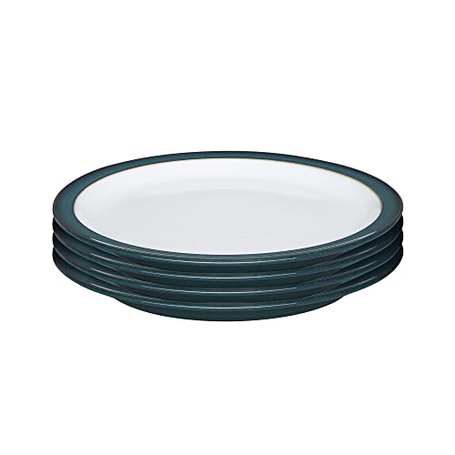 Denby - Greenwich Medium Plates Set of 4 - Green, White Dishwasher Microwave Safe Crockery 22cm - Glazed Ceramic Stoneware Tableware - Chip & Crack Resistant