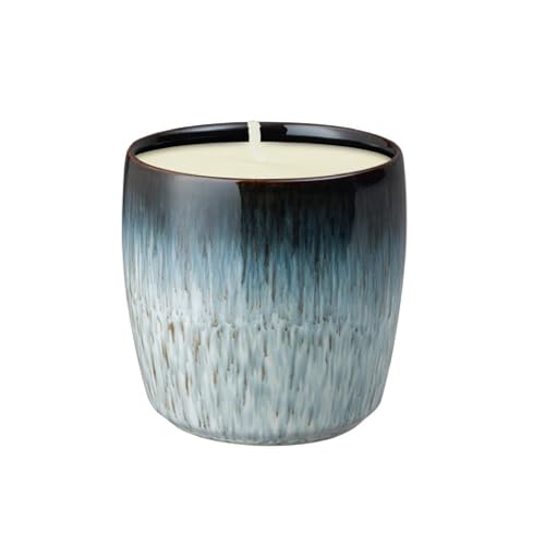 Denby - Halo Ceramic Candle - Hand-Poured Natural Wax Candle - 40 Hour Burn Time - Jasmine & Patchouli - Black, Grey Reactive Glaze Pot - in Gift Box