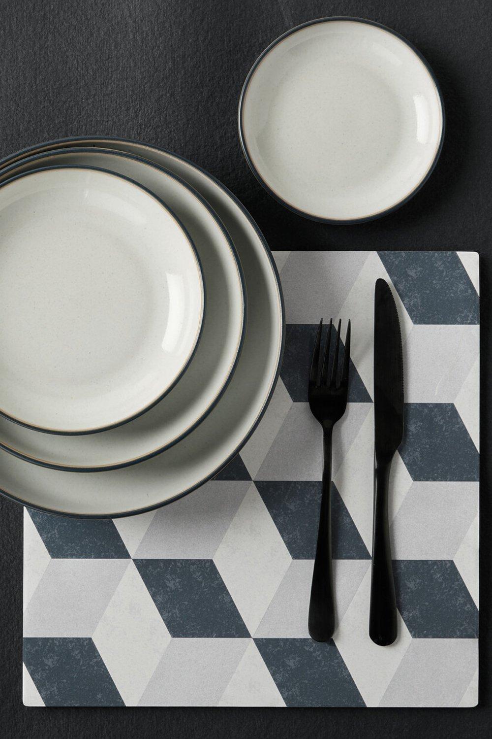 Denby - Elements Fossil Grey Dinner Set For 1 - 4 Piece Ceramic Tableware - Dis
