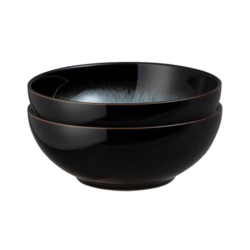 Denby - Halo Cereal Bowls Set of 2 - Reactive Glaze Dishwasher Microwave Safe Crockery 820ml - Black, Grey Ceramic Stoneware Tableware - Chip & Crack Resistant Soup Bowls