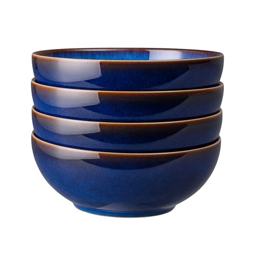 Denby - Elements Dark Blue Cereal Bowls Set of 4 - Dishwasher Microwave Safe Crockery 820ml 17cm - Navy Blue, White Ceramic Stoneware Tableware - Chip & Crack Resistant Soup Bowls