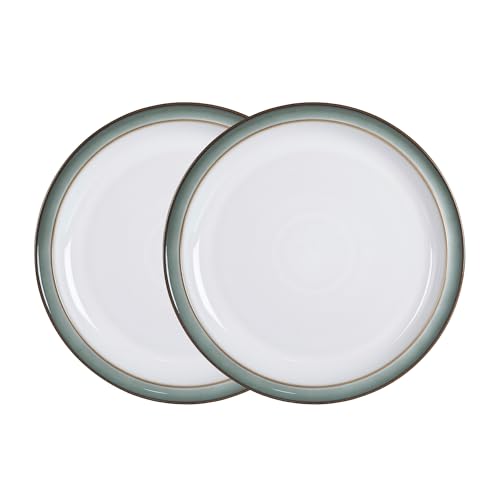 Denby - Regency Green Medium Plates Set of 2 - Dishwasher Microwave Safe Crockery 22cm - Green, White Ceramic Stoneware Tableware - Chip & Crack Resistant Lunch Plates