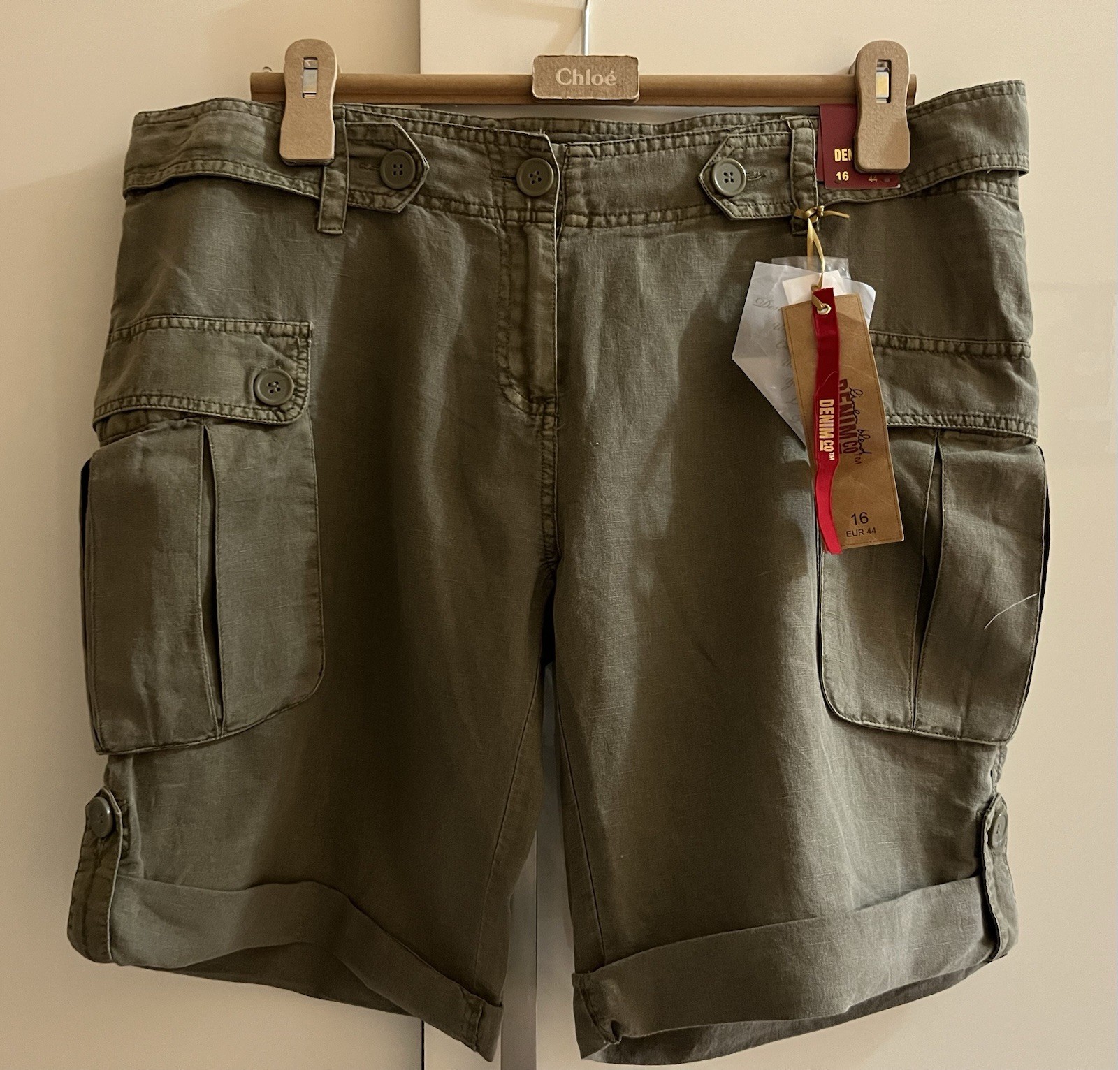 DENIM CO Ladies Size UK 16 Khaki Cargo Shorts Linen Blend Green BNWT Women’s