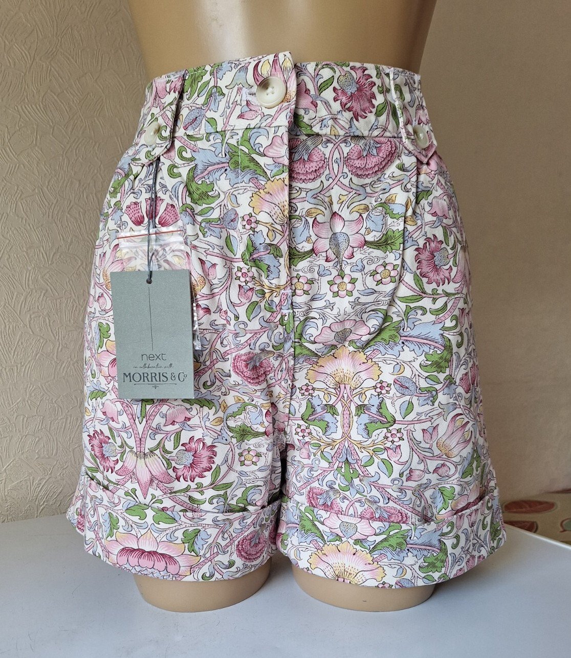 NEXT Morris & Co Floral Denim Shorts Size 8 Ivory & Multicoloured