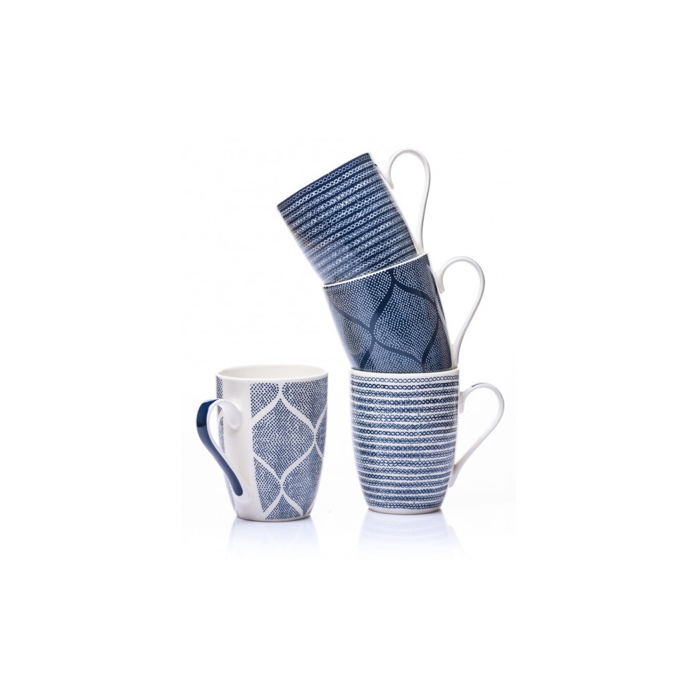 Blue 350ml Mugs Coffee Cups 4-Set Ceramic Weave Design Geometric Denim Pattern