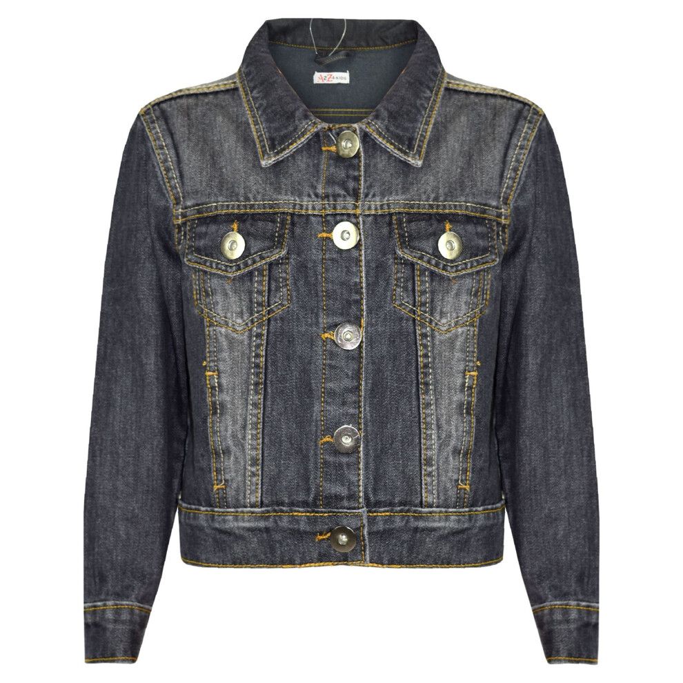 (7-8 Years, Jet Black) Kids Jean Denim Jacket Coats For Girls Age 3-13