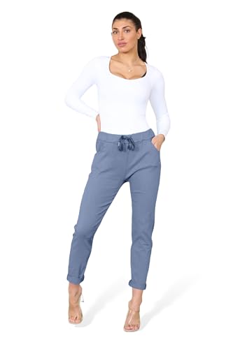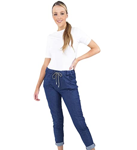 Ladies Italian Jeans Denim Style Magic Trousers Stretch Bottoms Plain Leggings for Women Elasticated Waist Smart Casual Joggers Pants (UK, Numeric, 16, 20, Regular, Regular, Medium Denim)
