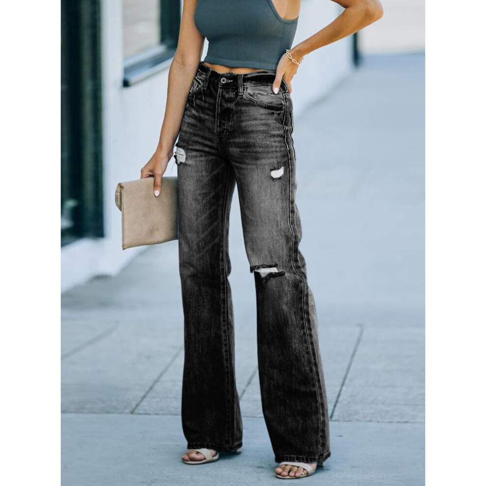 Casual Pants Are Thin and Temperament Ripped Denim Wide-leg Pants Trousers Women's Denim Joggers Women Side Pocket