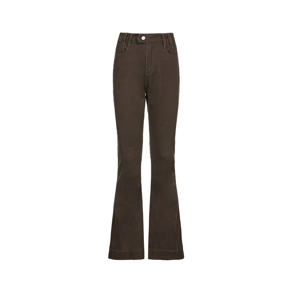 Retro Harajuku Brown Denim Jeans Joggers Women Vintage Mid Waist Straight Pants Streetwear Vintage 90s Trouser Cuteandpsycho