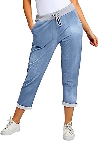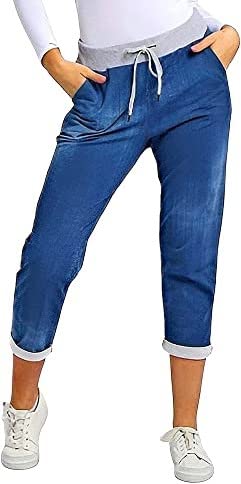 Lounge Jeans Women 2025 Clearance, Comfort Jeans Denim High Waited Baggy Wide Leg with Stretch, Boyfriend Jeans Sweatpant,Palazzo Trousers Joggers, Straight Leg Pants Workout Spring Fall Work Pants