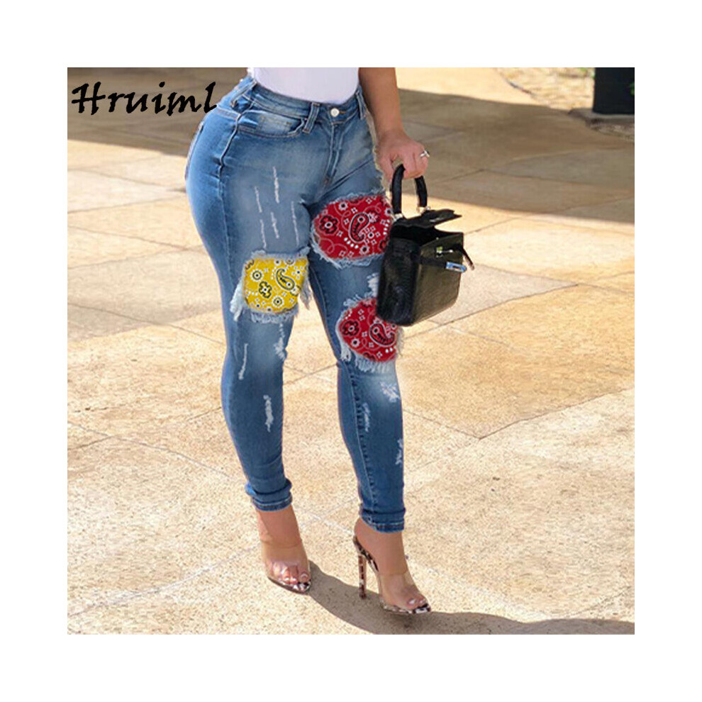 (Blue-M) Denim Joggers Women Pants Patchwork Jeans Streetwear Women Mid Waist Skinny Pencil Pants Casual Long Trousers Autumn