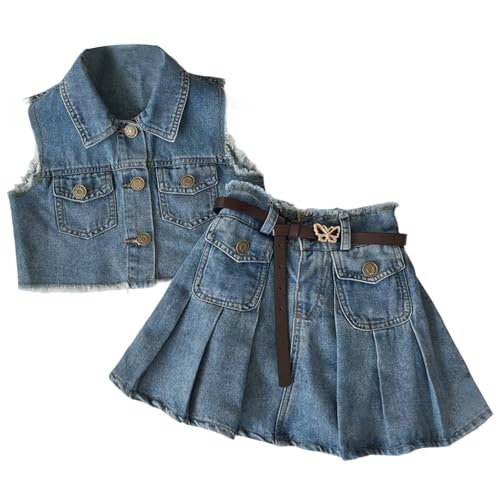 Girls Jean Skirt Pleated Blue Mini Kids Toddler Denim Skort with Short Underneath for 2-8 Years/G