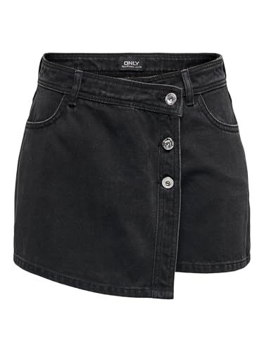 ONLY Women's Onllesly Reg Lb DNM Bj Noos Mini Denim Wrap Skort, Washed Black, M