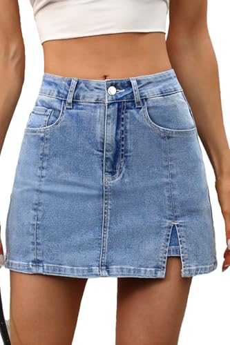 ELLEVEN Women’s Side Slit Denim Skort, High-Stretch,High Waisted,Y2K Mini Jean Skirt Shorts with 5 Pockets, A-Denim Blue, M