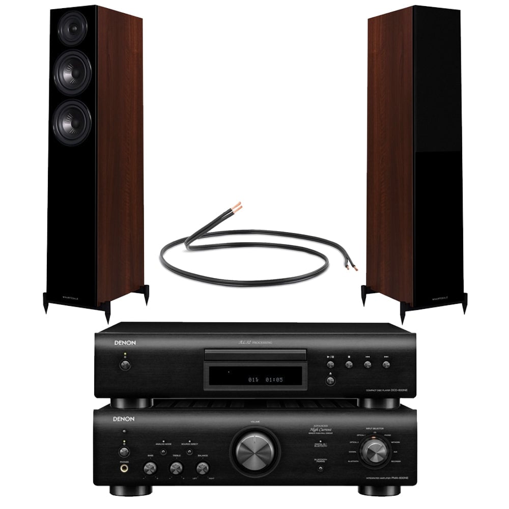 Denon PMA-600NE Amp & DCD-600NE CD Player Black with Wharfedale Diamond 12.3 Floorstanding Speakers Walnut Hi-Fi Bundle
