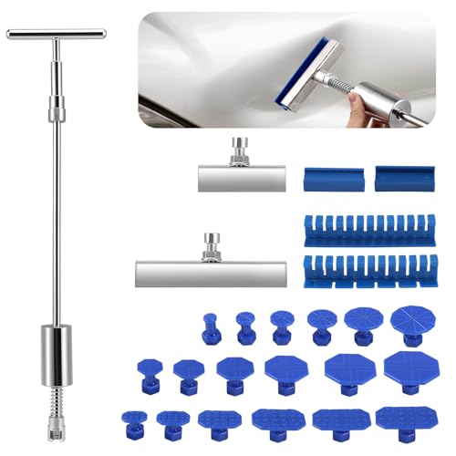 MILIWAN Car Dent Puller, Dent Removal Kit, Paintless Car Dent Repair Kit with T-bar Dent Puller, Rubber Hammer, Auto Body Dent Remover Kit for Car/Moto/Hail Damage/Metal Surface Dents Repair