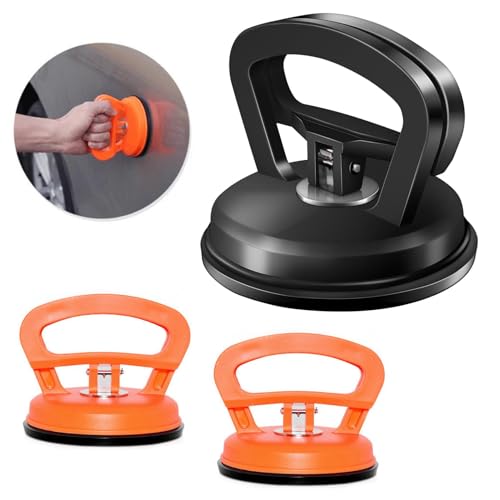 3 Pcs Car Dent Puller, Dent Removal Kit, Dent Remover Tool, Car Dent Puller Kit with Suction Cup, Glass, Screen, Tiles Lifting, Objects Moving, Car Dent Puller Kit (1 Large Orange + 2 Small Black)