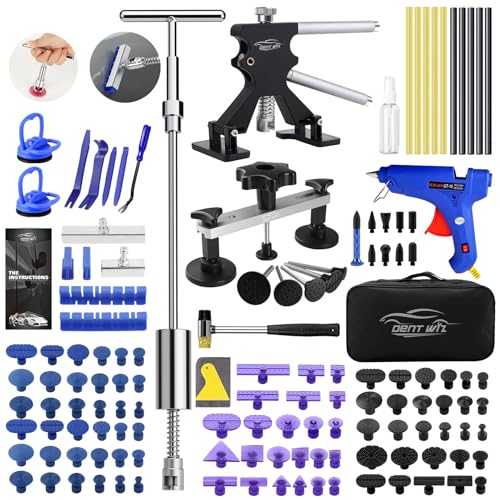 DentWiz Car Dent Puller Kit with T-bar Slide Hammer, Glue Gun and Bridge Puller, Dent Lifter -Paintless Dent Removal Kit for Auto Body Dent, Metal Surface and Hail Damage Repair