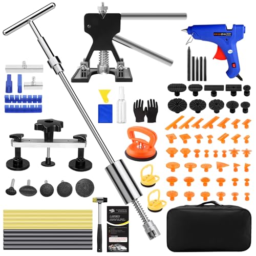 Putentfun Auto Body Dent Repair Kit,66 PCS Paintless Dent Removal Kit,Car Dent Repair Puller with Golden Dent Puller,T-Bar Puller,Bridge Puller for Automotive Dents/Door Dings/Hail Damage Removal