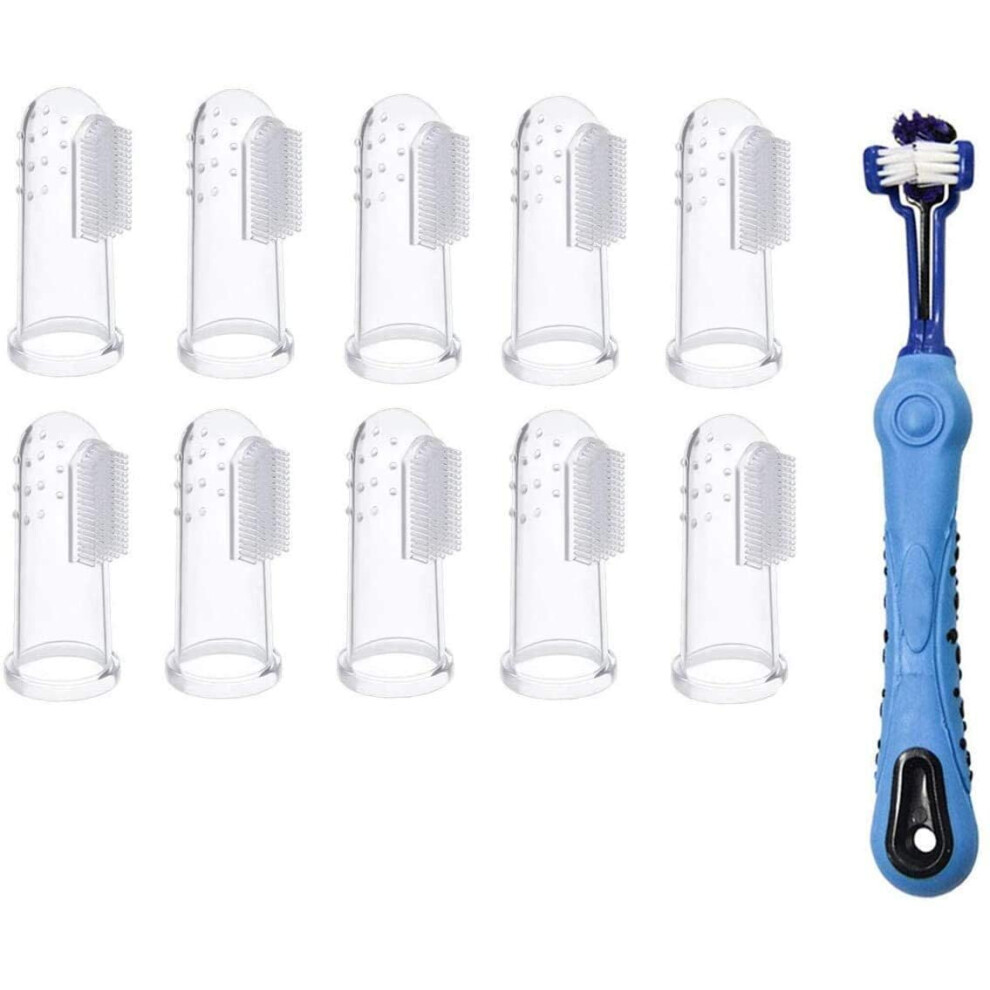 15Pcs Pet Toothbrushes Set Dog Dental Hygiene Brushes Natural Rubber Pet Teeth Cleaning Pet Tooth Lege with 12x Finger Toothbrush Triple Co Dog