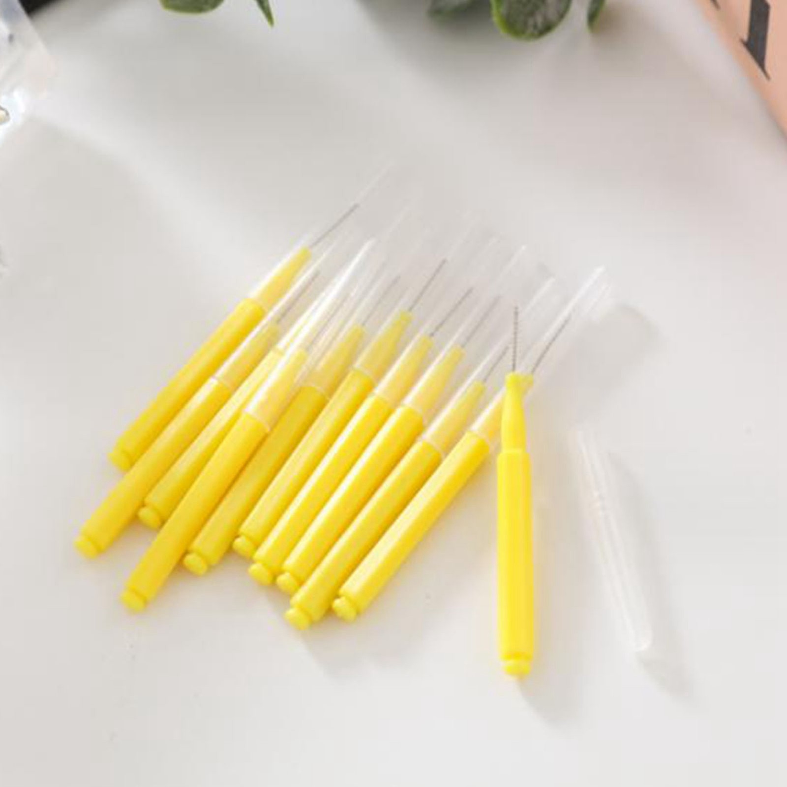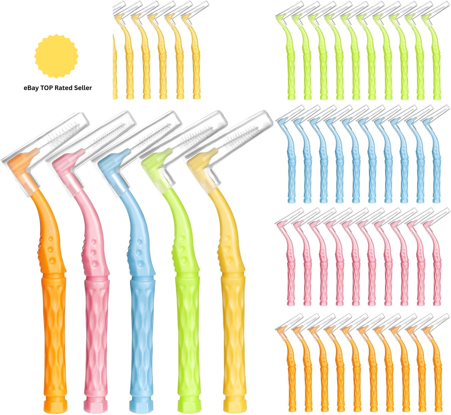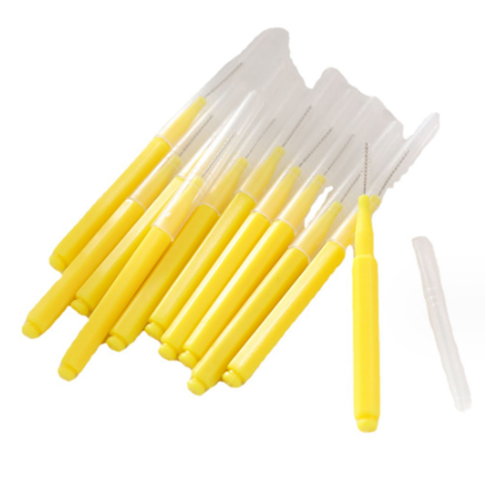 50Pcs Interdental Brushes, Yellow Soft Dental Brushes with Non-Slip Handle Angle