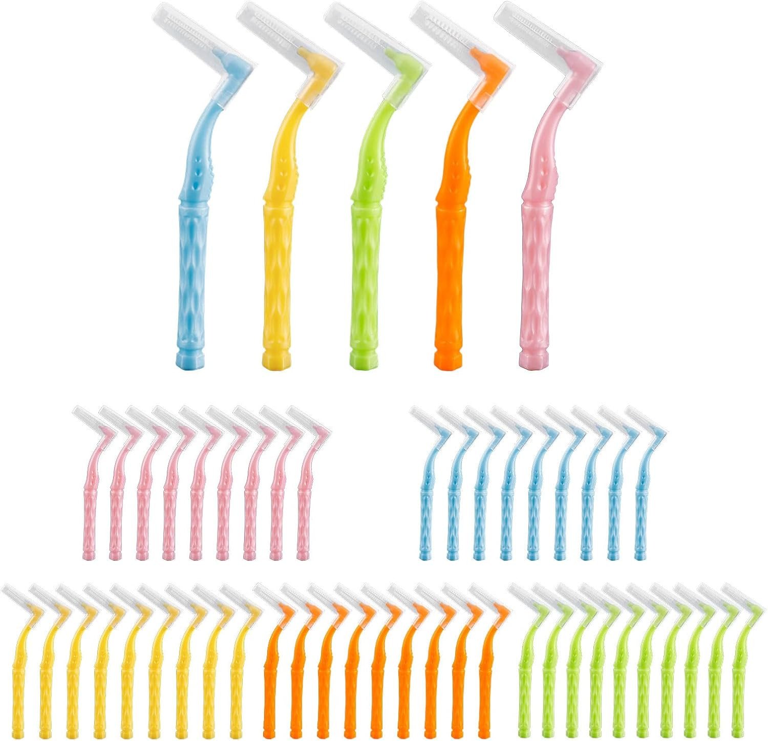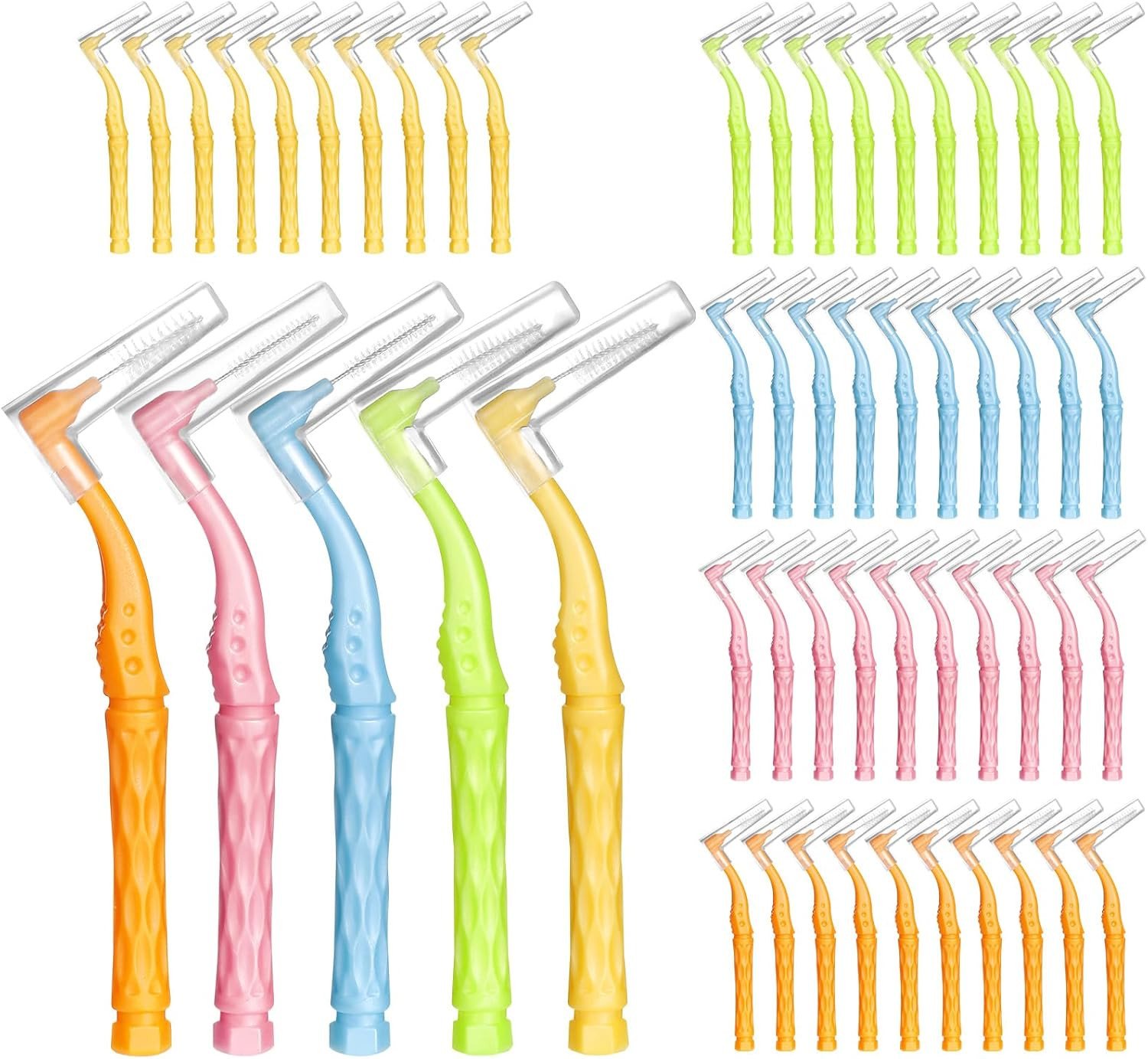 50Pcs Interdental Brushes, 5 Sizes Soft Dental Brushes with Non-Slip Handle Angl