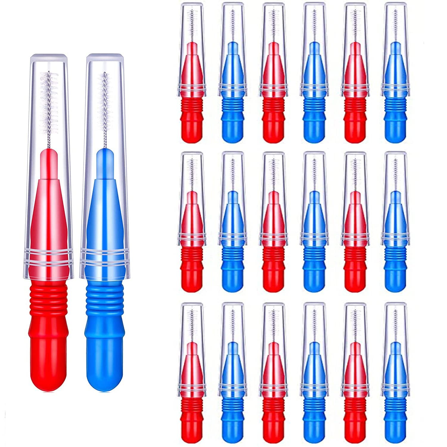 20Pcs Interdental Brush Dental Brushes Mini 1 count (Pack of 20), Blue+red