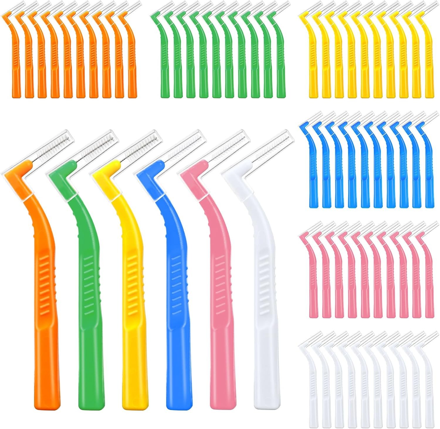 60Pcs Interdental Brushes, 6 Sizes Soft Dental Brushes with Non-Slip Handle Angl
