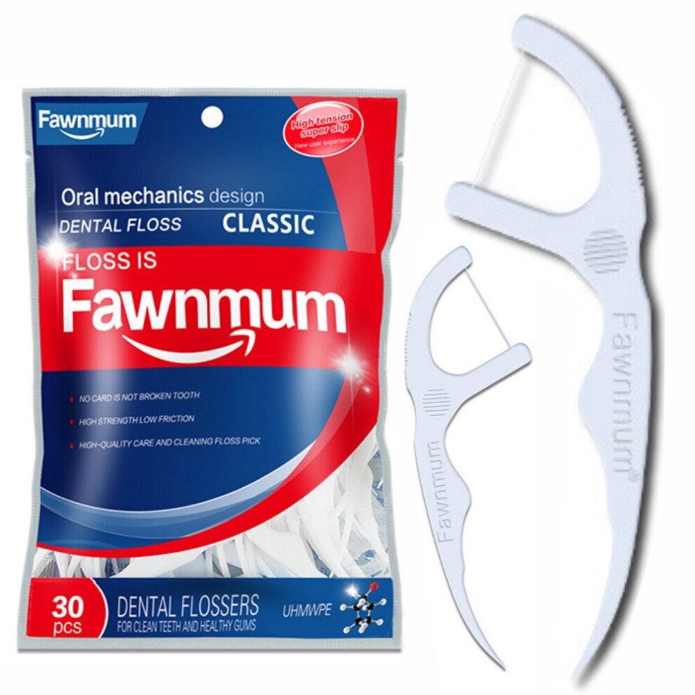 30Pcs Oral Hygiene Adult Interdental Brushes Dental Floss Flosser Sticks White Tooth Picks Food Residue Remover Teeth Cleaning