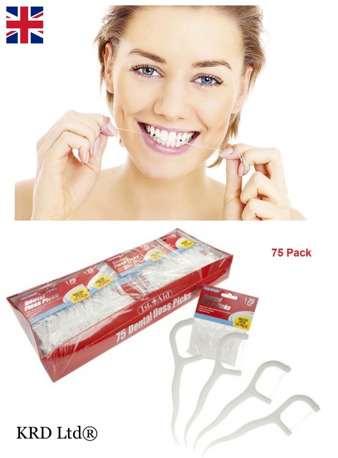 Dental Floss Sticks Tooth Picks 2 in 1 Teeth Plaque Remover Interdental x 75