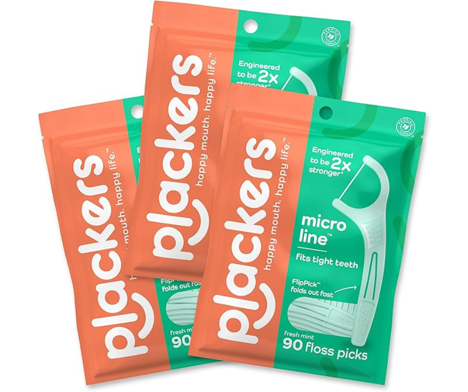 Plackers Micro Line Dental Floss Picks Mint Flavour Fold-Out FlipPick - 3 x 90
