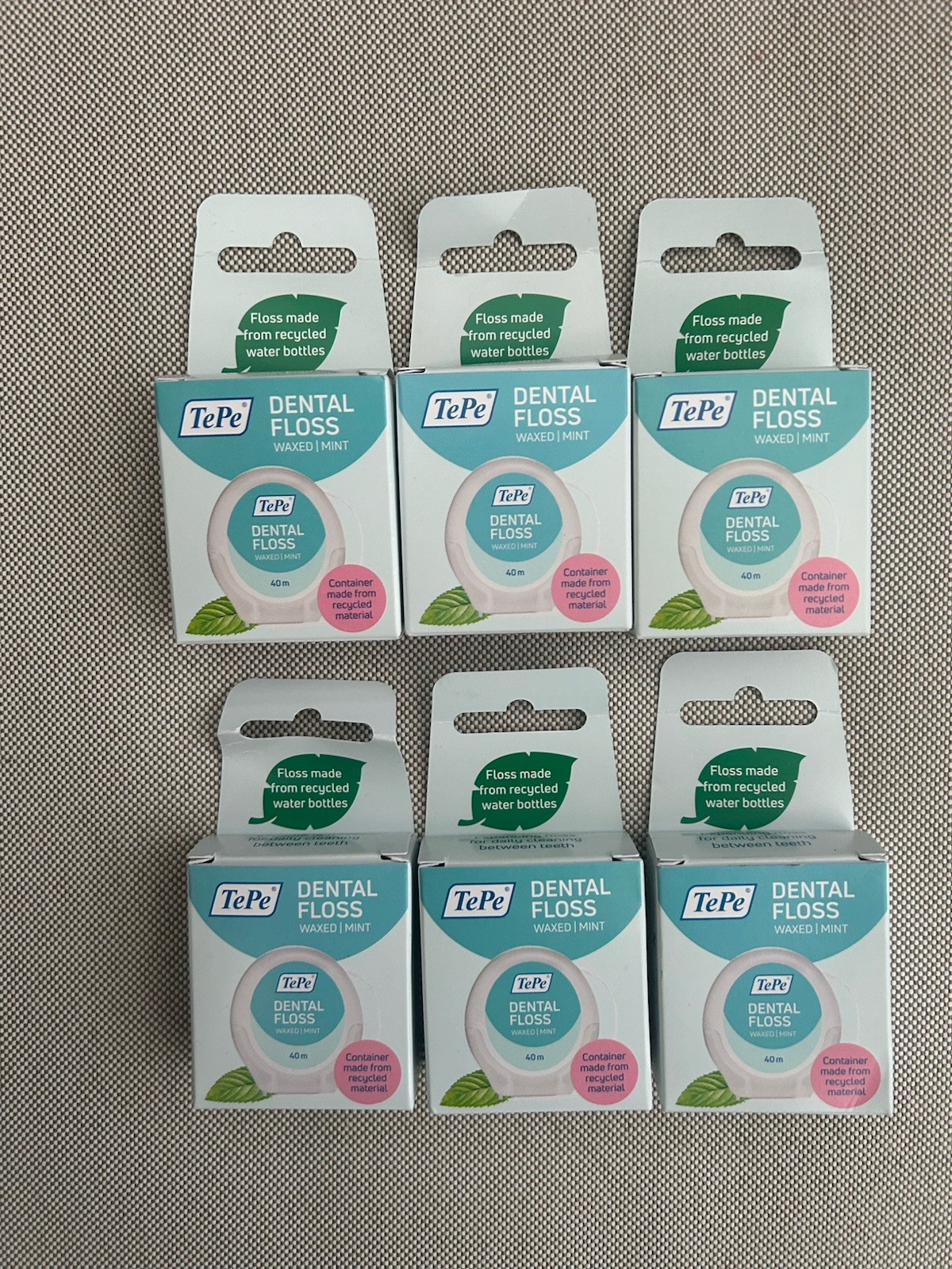 TePe Dental Floss Waxed Mint 40m x 6 BNIB FREEPOST