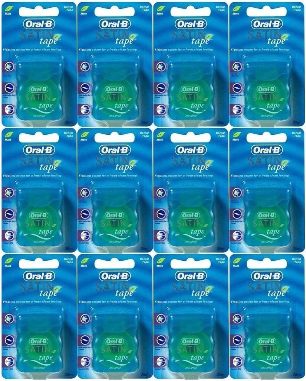 Oral-B Satin Floss Dental Floss Tape Mint 25m x12 - Improve Oral Hygiene