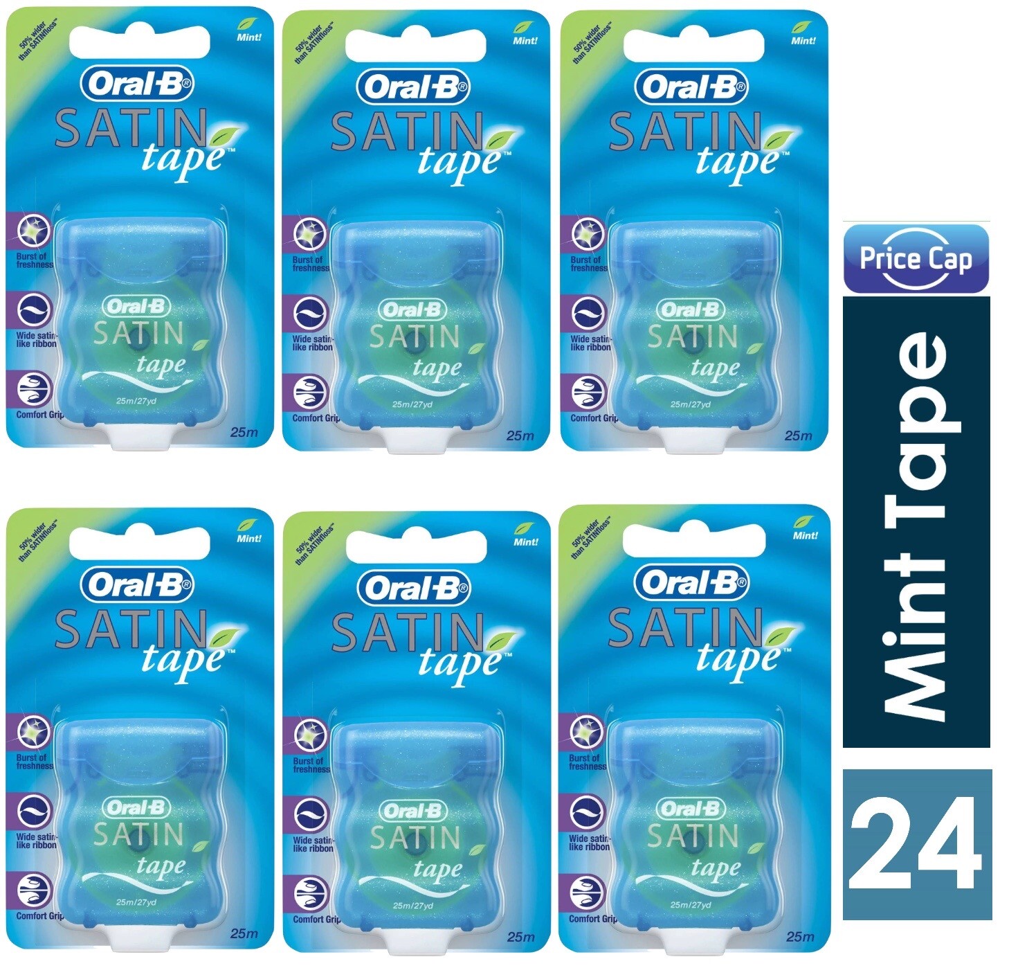 24 x Oral B Satin Tape Mint 25 m/27y d | Mint Dental Tape | Comfort Grip